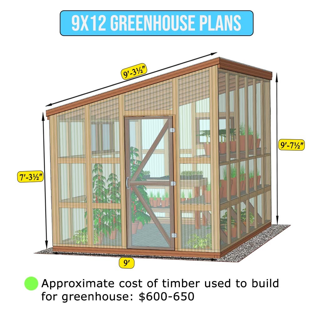 DIY Greenhouse Plans PDF | 9x12 Lean-To Backyard Greenhouse | Step-by-Step Building Guide with Materials & Cut List